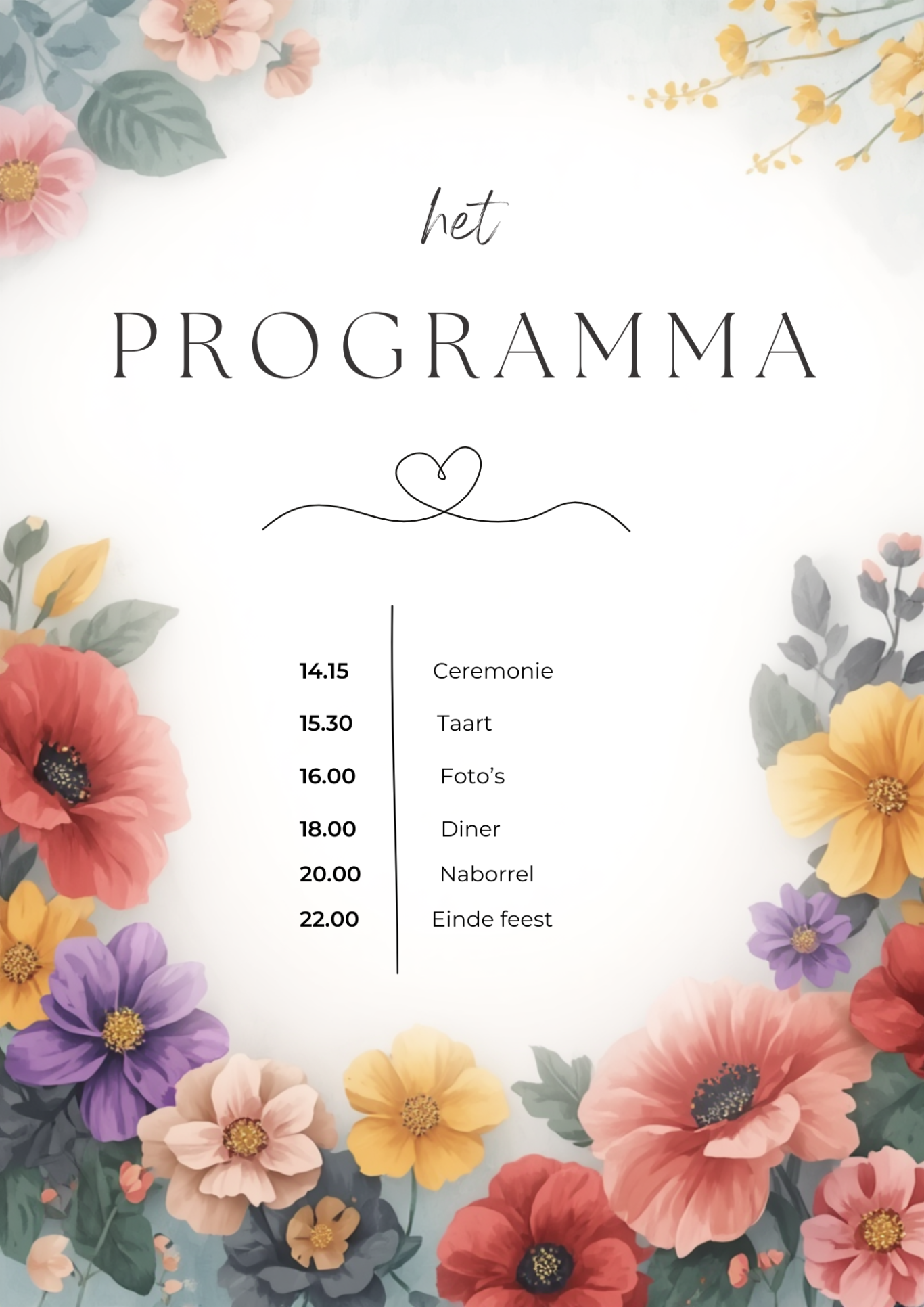 Je bent welkom vanaf 14.00 uur en we sluiten de dag af rond 22.00 uur.